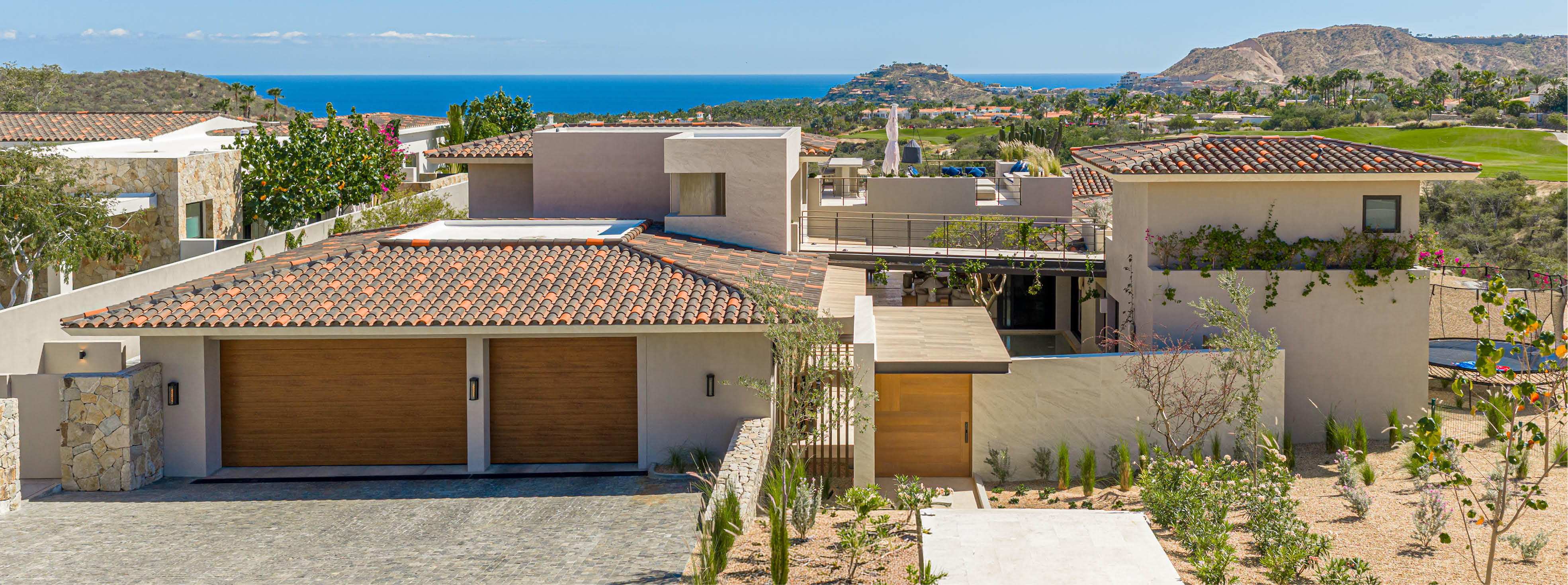 The upper level offers additional guest accommodations, office space, TV lounge, and access to rooftop terraces. A spectacular rooftop with firepit creates the perfect setting for sunset gatherings under the Baja sky.